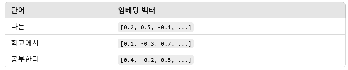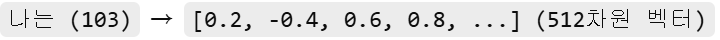 - "나는" → [0.2, 0.5, -0.3, 0.8]