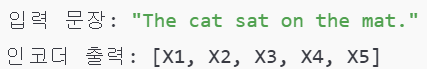 여기서X1, X2, X3, X4, X5는 각각 "The", "cat", "sat", "on", "the mat"의 정보가 포함된 벡터