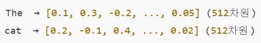 단어별로 고정된 차원(예: 512차원)의 벡터로 변환