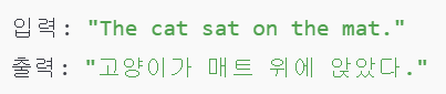 💡 영어 → 한국어 번역 예제 ("The cat sat on the mat." → "고양이가 매트 위에 앉았다.")