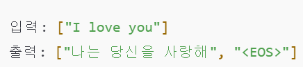 입력: "Hello, how are you?" 출력: "안녕하세요, 잘 지내세요. <EOS>" → <EOS>를 만나면 출력 종료!