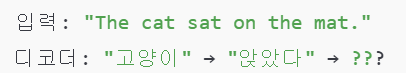 트랜스포머의 **디코더(Decoder)**는 문장을 생성할 때 기존에 생성한 단어들만 참고할 수 있습니다. 하지만, 입력 문장의 정보를 고려하지 않으면 문맥을 반영한 정확한 예측이 어려움